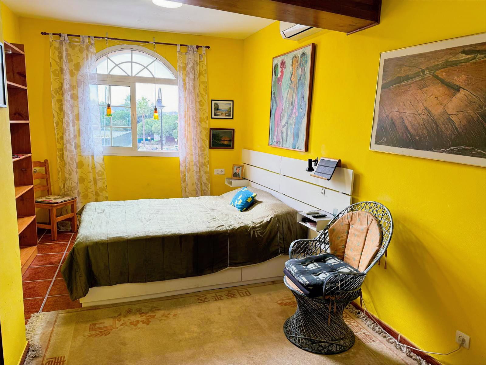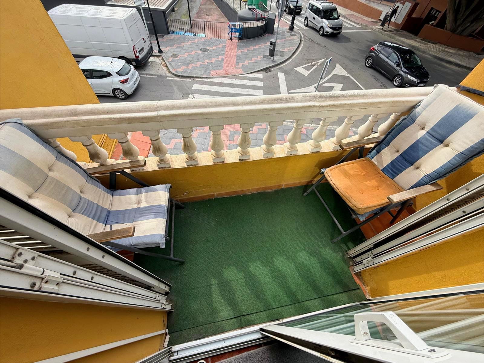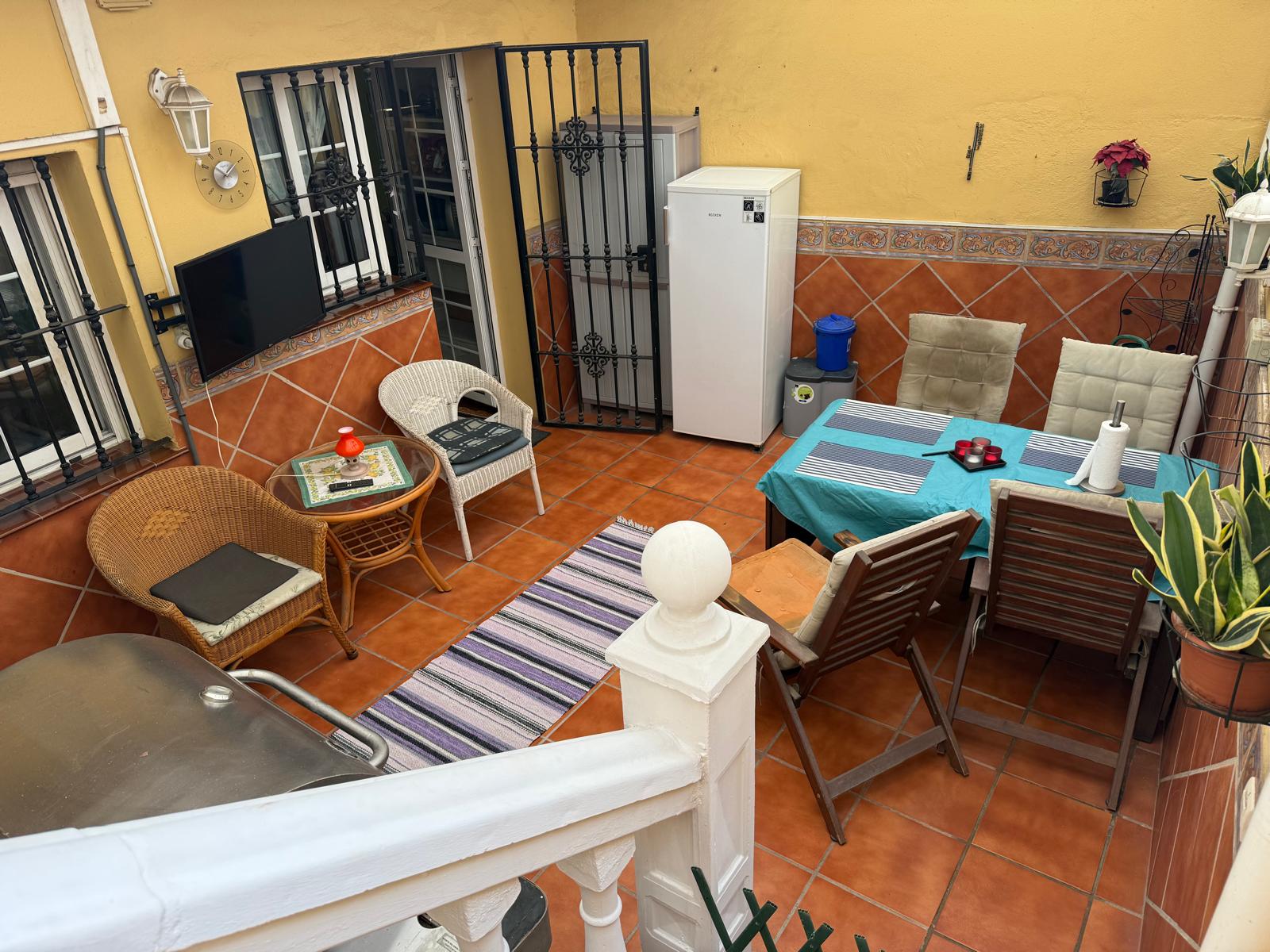 Apartment in the Las Lagunas area on the outskirts of Fuengirola. Close to shops, shopping centers, cafes, etc. and good communication with the highway. The apartment is located on the first floor without a lift and has a private roof terrace. There are only 3 apartments in the house. The apartment has a hall, kitchen, living room, two bedrooms and a bathroom. The living room has a fireplace and access to a small balcony facing southwest. The kitchen is adjacent to a spacious terrace with an opening roof and space for a dining table and barbecue. There is also a small storage room and the stairs up to the roof terrace. The spacious bathroom was renovated 6 years ago and has a washing machine and shower.