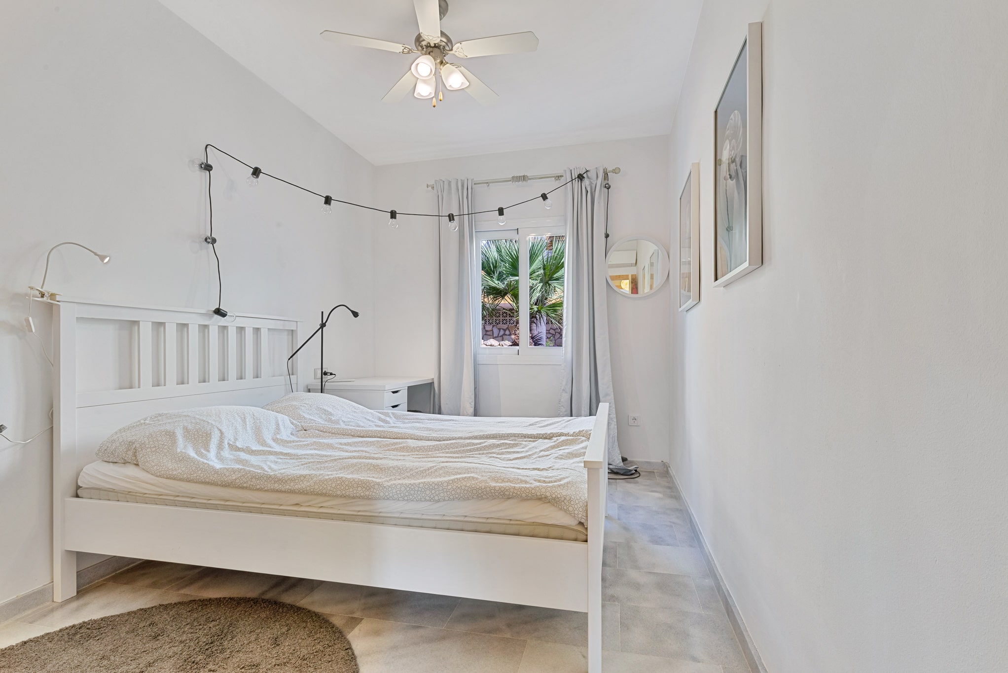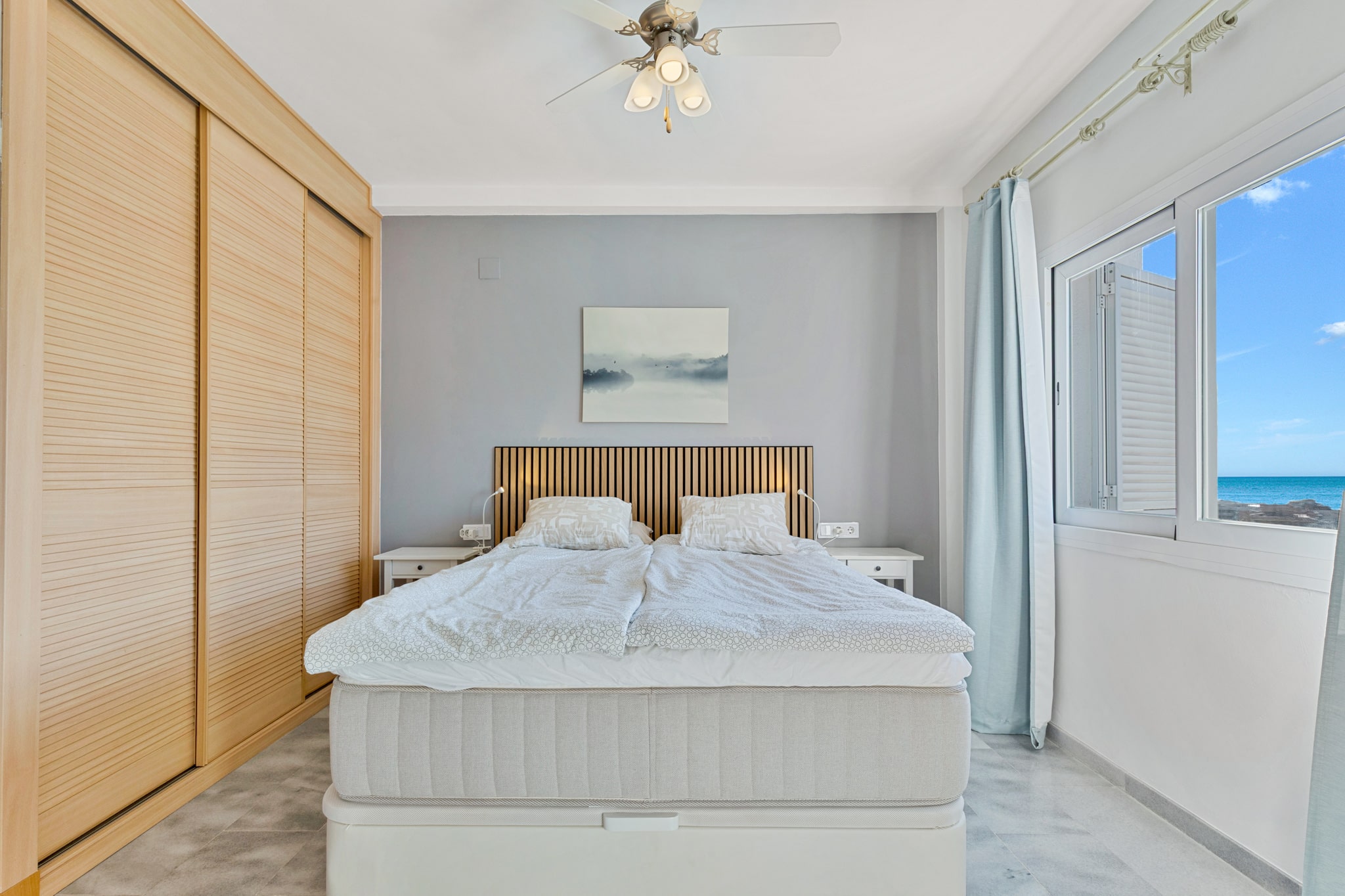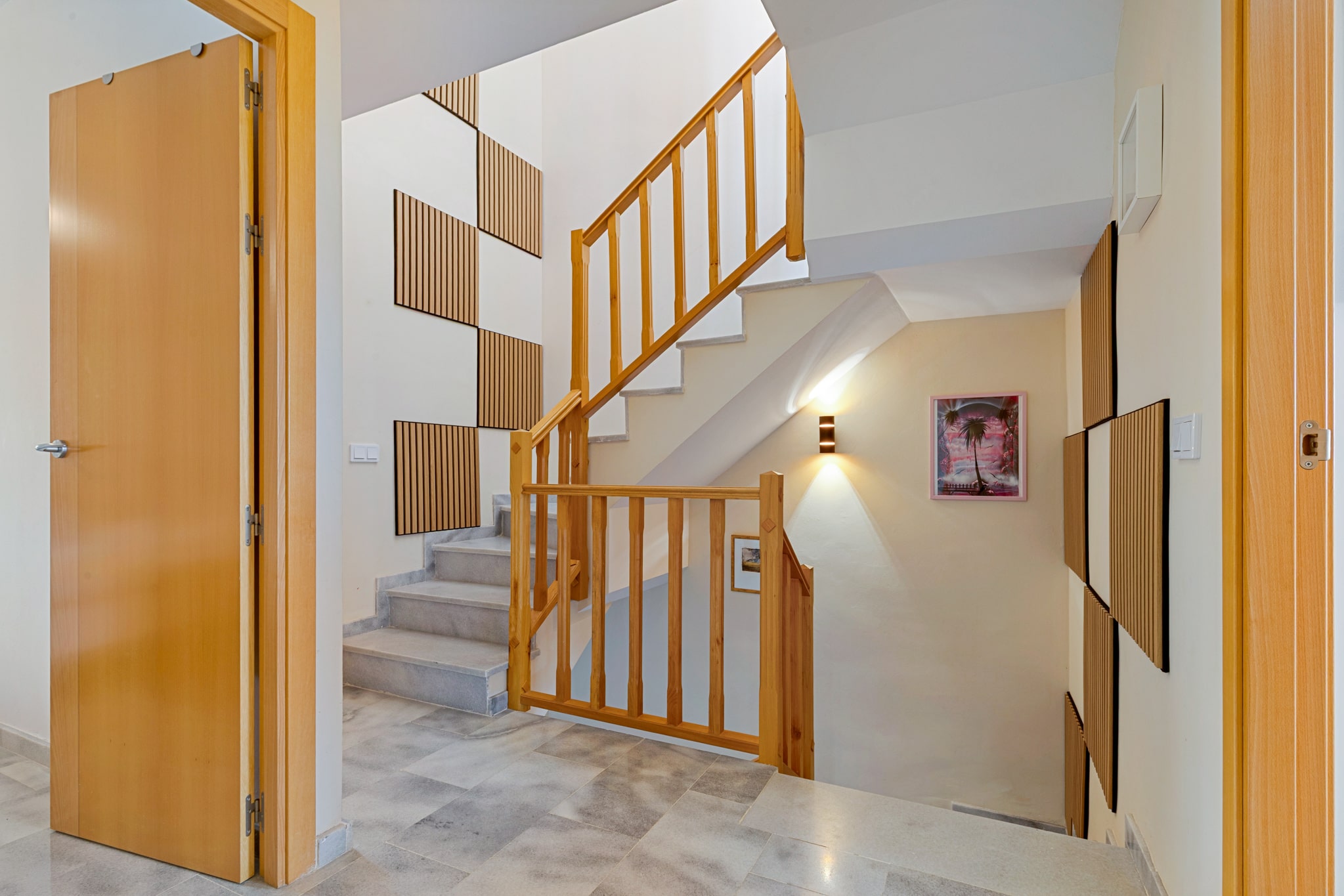 En la planta superior hay tres dormitorios con armarios empotrados y dos baños con ducha, uno de ellos en suite. En otra planta se encuentra un cuarto dormitorio con aseo y lavabo. Anteriormente, este espacio era una azotea acondicionada por el anterior propietario. Parte de la terraza se conserva y dispone de espacio para una barbacoa y una mesa de comedor. Desde aquí también se disfruta de vistas al mar y a los alrededores. En el sótano hay un garaje privado con espacio para un coche y una moto, bicicletas o almacenamiento.