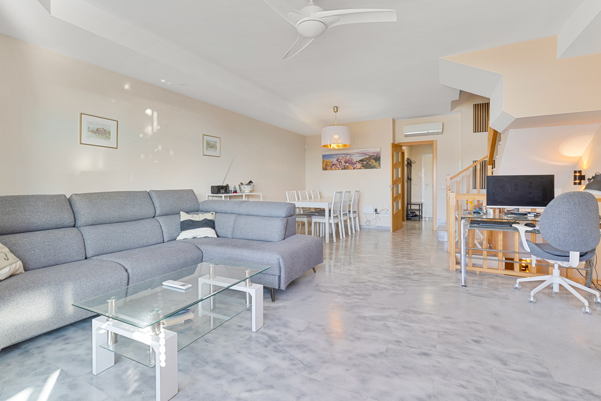 La casa goza de una excelente orientación suroeste con vistas al mar, dos terrazas y un garaje privado con espacio para un coche y trastero.