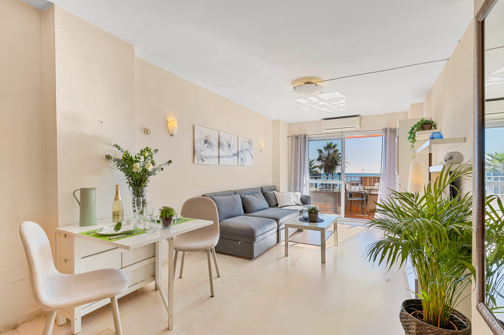 El apartamento se encuentra en la primera planta y ofrece unas bonitas vistas al mar y al paseo marítimo.