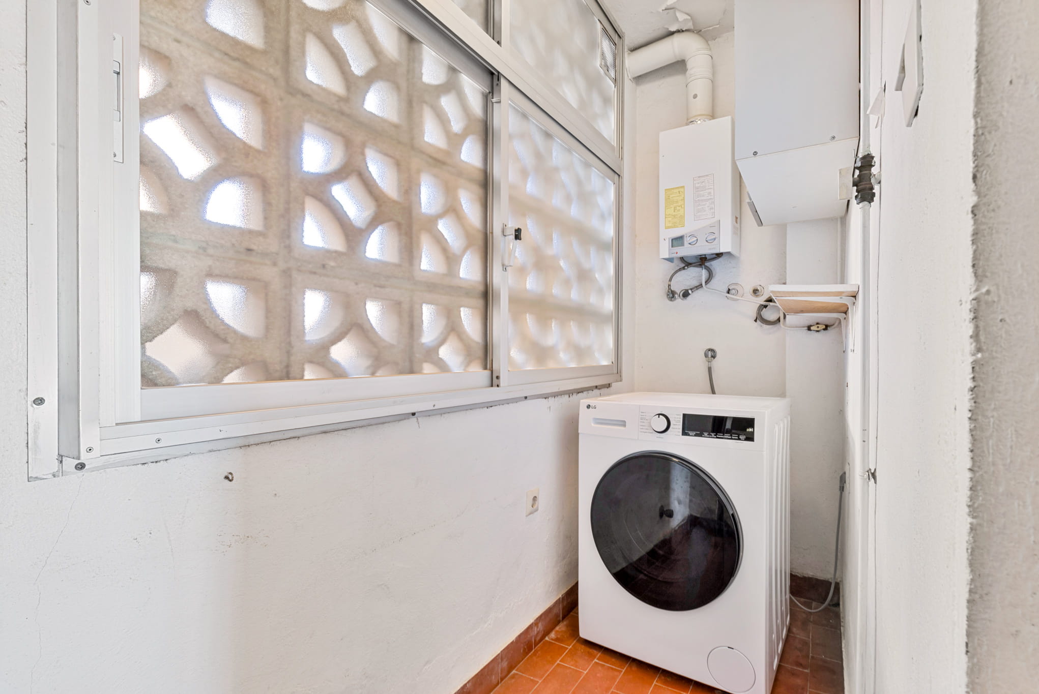 Desde el salón se accede a la terraza con espacio para una mesa de comedor y tumbonas. En la terraza también hay un trastero.