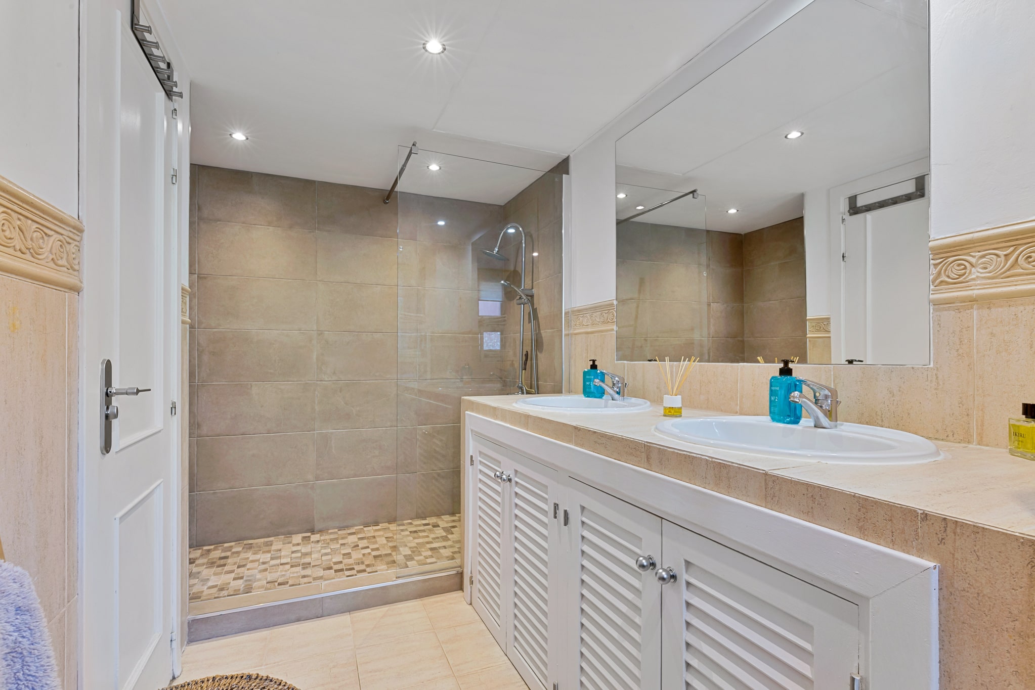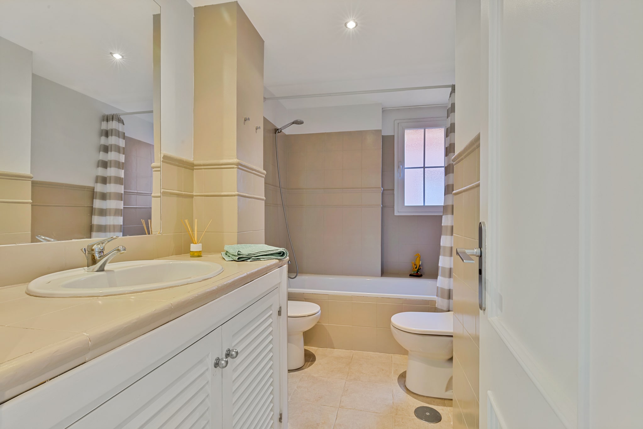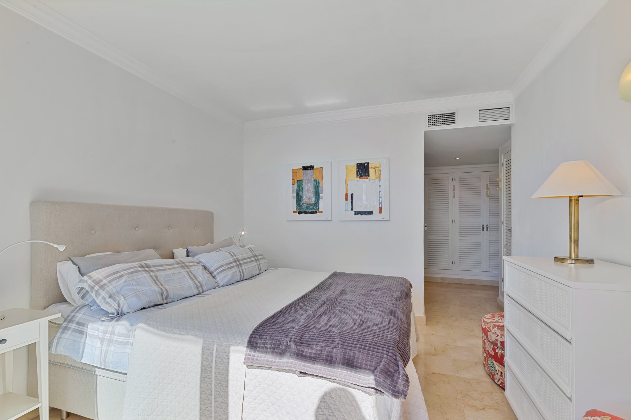 Våningen rymmer också två sovrum samt två badrum. Det stora sovrummet har badrum en-suite och gott om garderobsplats.