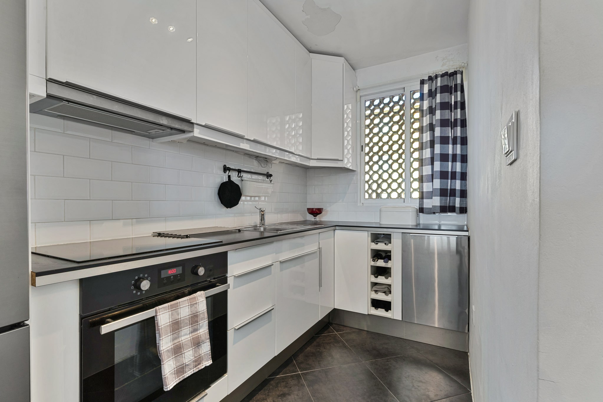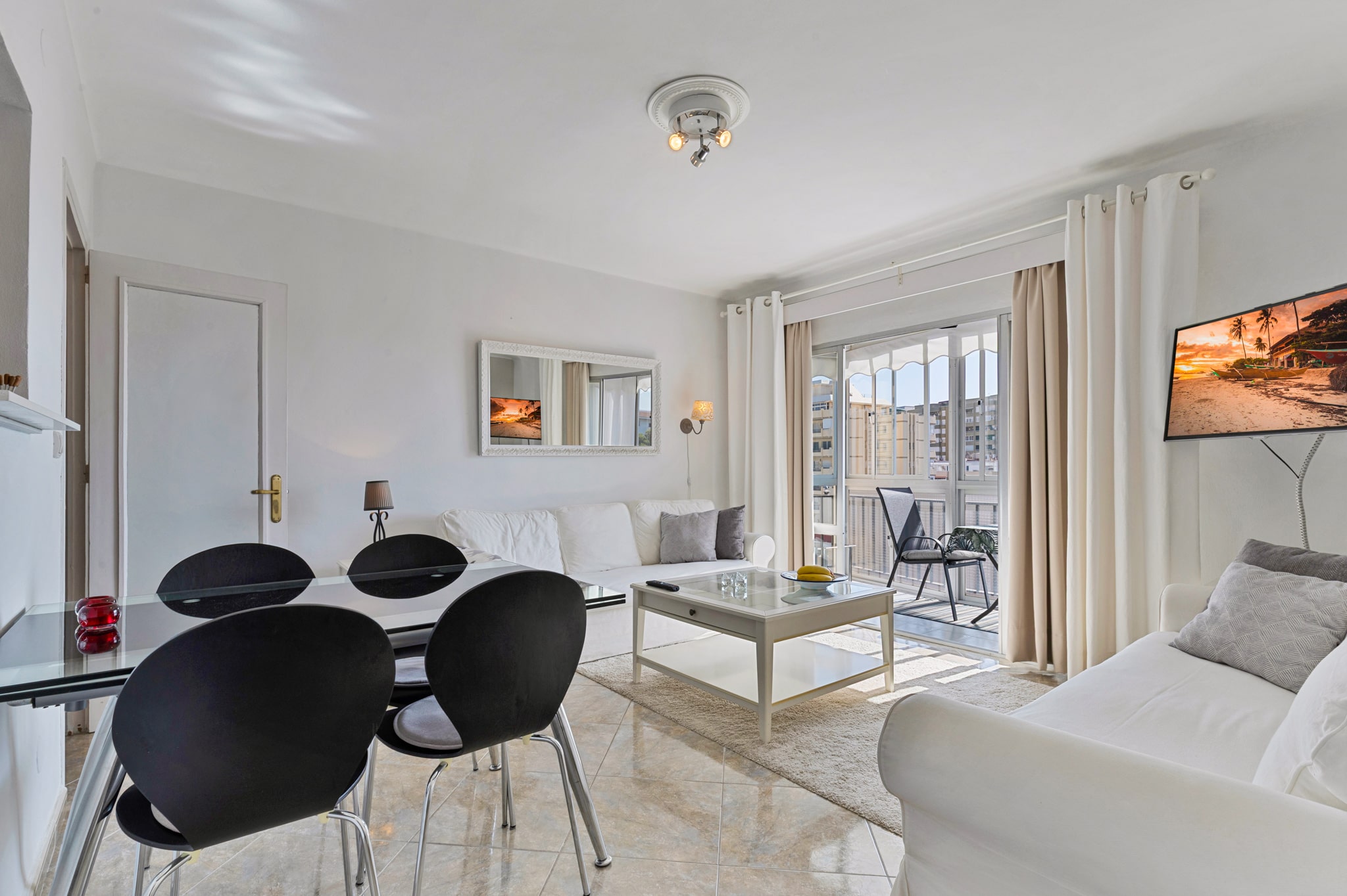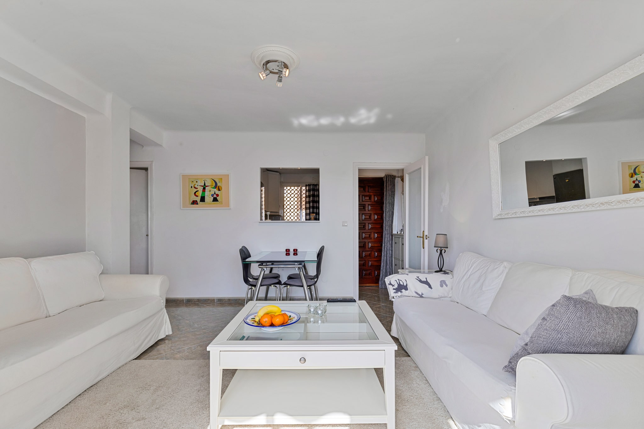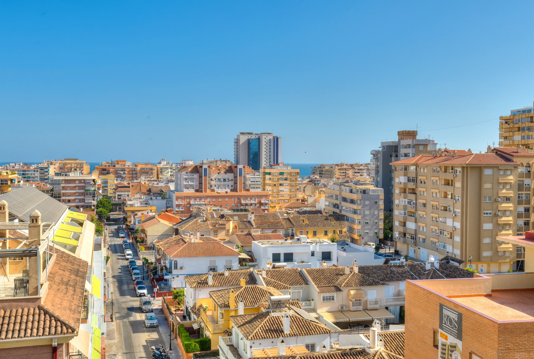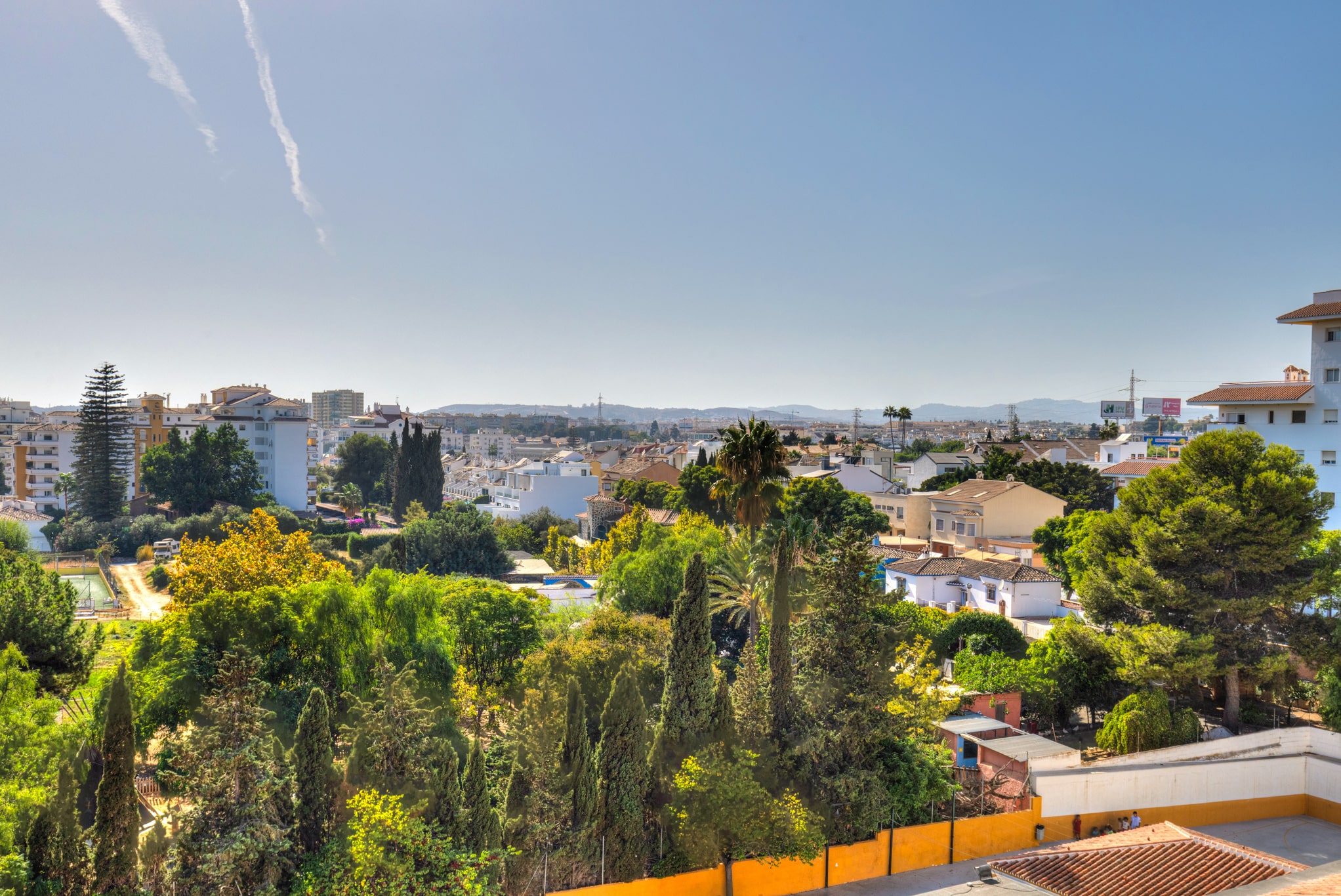 Ljus hörnlägenhet i Los Boliches endast 10 minuters promenad från stranden. Härligt sydvästläge med öppen utsikt mot hav, berg och grönområde.